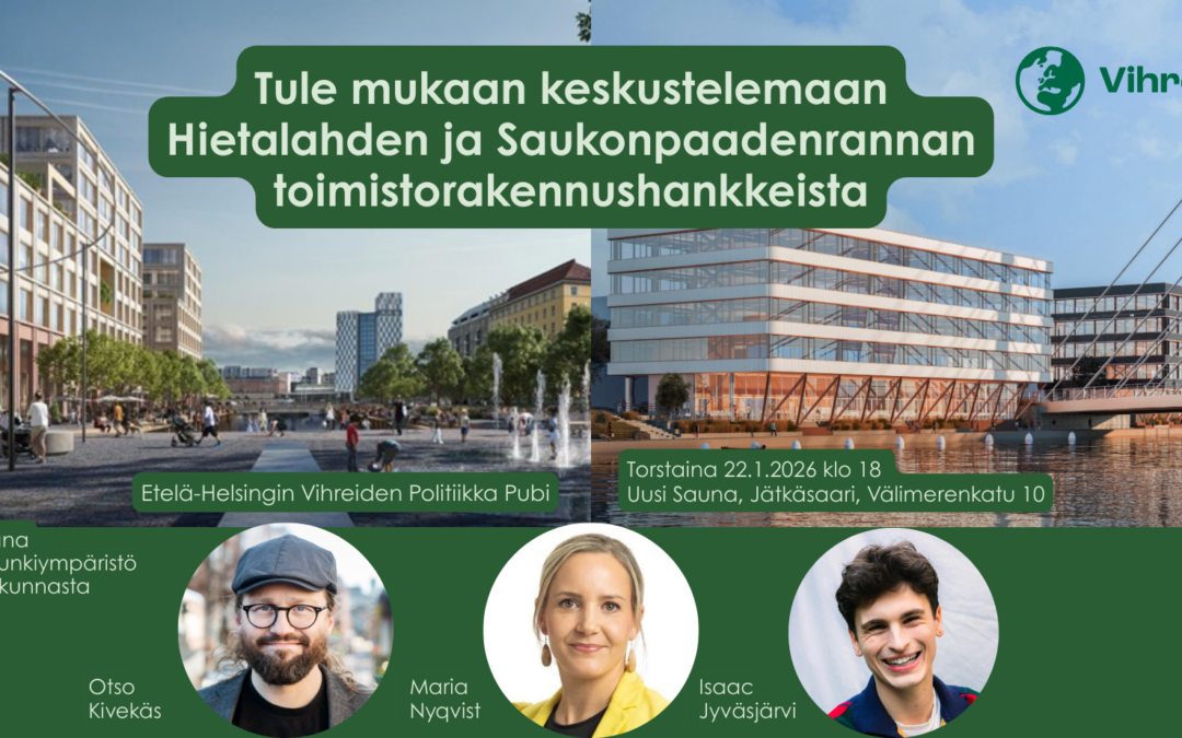 Tapahtuma on avoin kaikille pääkaupunkiseudun vihreille sekä muille kiinnostuneille.